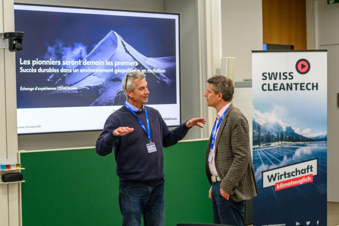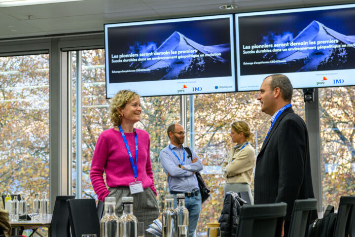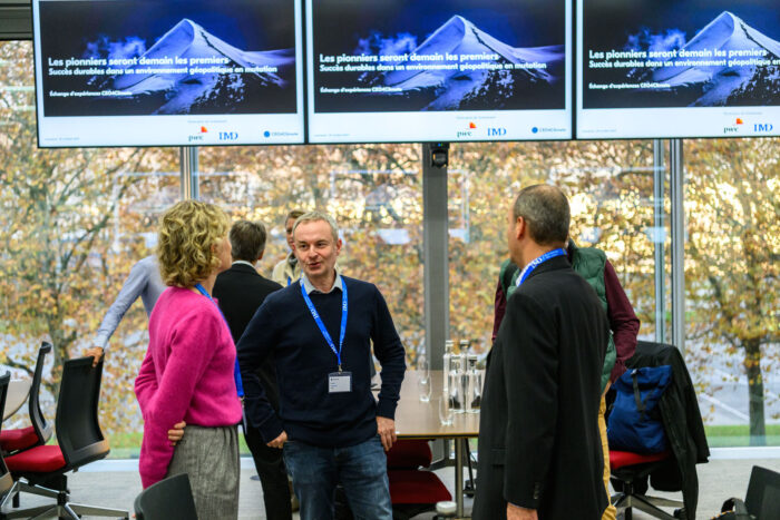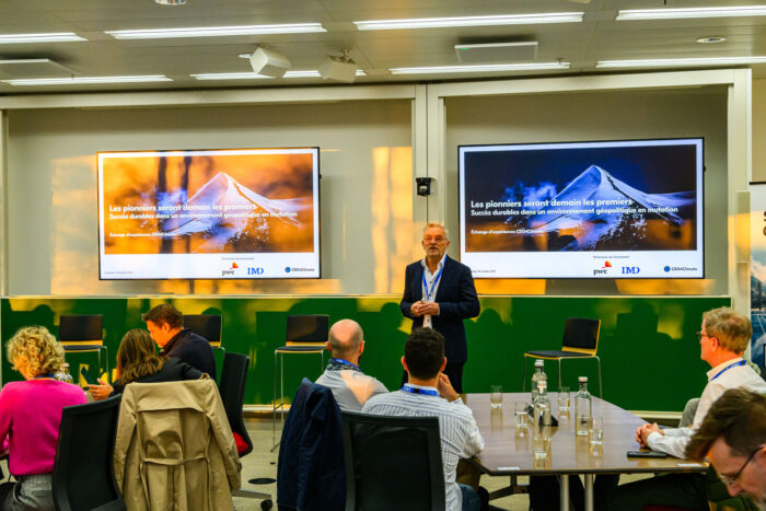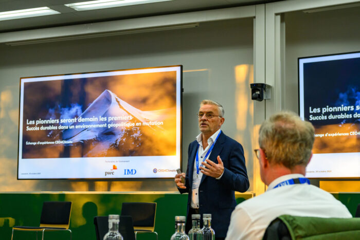 Un nouvel évènement CEO4Climate s’est tenu jeudi le 30 octobre à Lausanne, acueilli par notre partenaire de l’IMD, que nous remercions chaleureusement. Avec nos intervenants Julia Binder (Directrice IMD Center for Sustainable and Inclusive Business) et Adrien Lagache (Strategic Director Decathlon Switzerland), accompagné de Christian Petit (membre du comité directeur de swisscleantech), nous avons examiné et discuté comment les entreprises peuvent tirer enseignements de la situation géopolitique actuelle afin de renforcer leur compétitivité, augmenter leur résilience et maximiser leur sécurité énergétique.